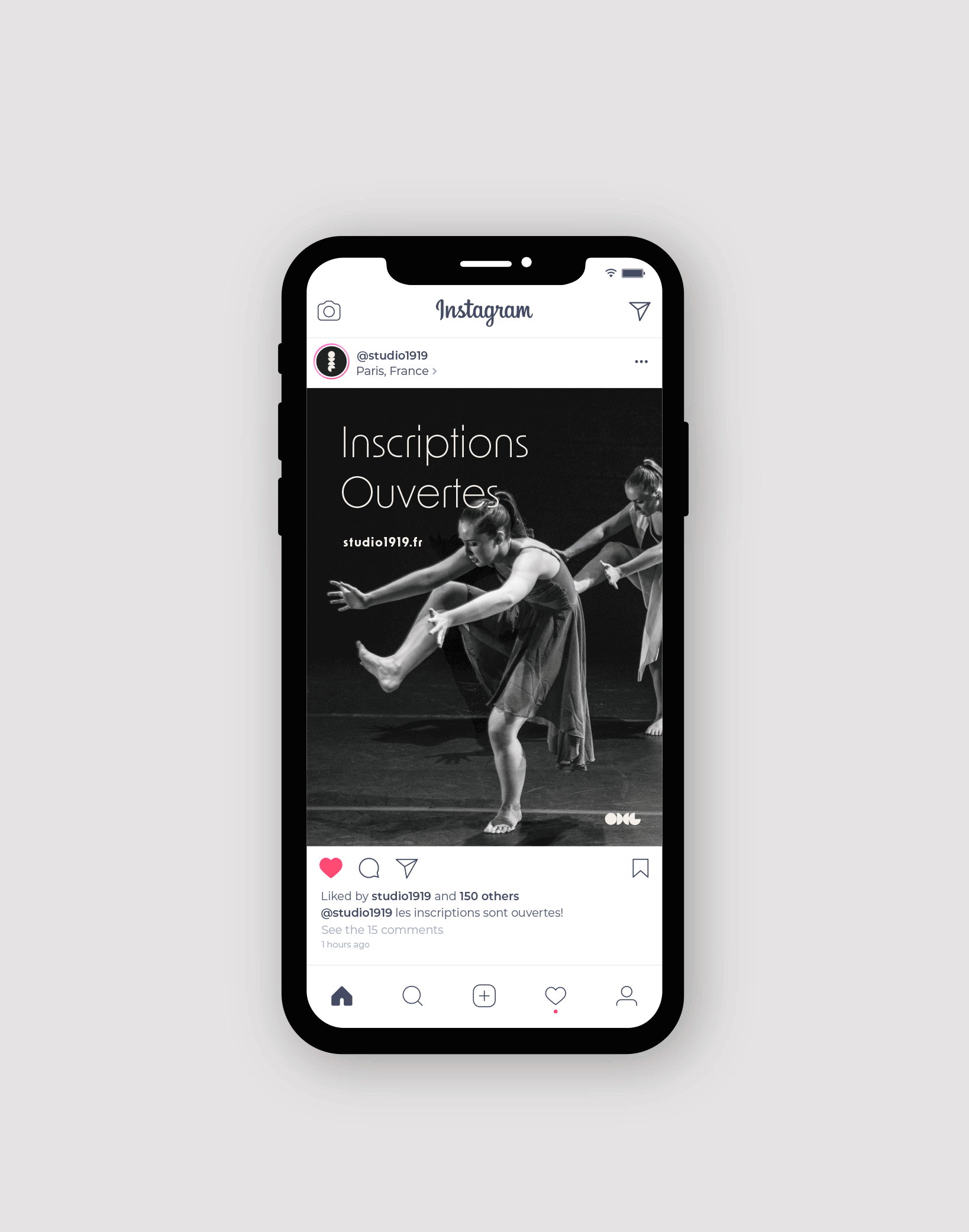 STUDIO 1919 est une école de danse ouverte à tous. L'école propose différents styles de danse, tels que le classique, le rock et le contemporain pour tous les niveaux. L'identité visuelle s'inspire du style Bauhaus, qui se caractérise par une esthétique minimaliste et fonctionnelle.